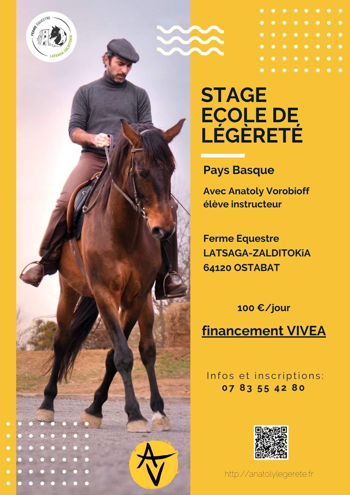 Je me déplace pour des stages. Suivre un stage en tant que cavalier ou auditeur, est une bonne façon de découvrir l’Ecole de Légèreté, d’avoir un suivi avec son cheval ou simplement venir voir les chevaux travailler pour se donner des idées avec le sien !