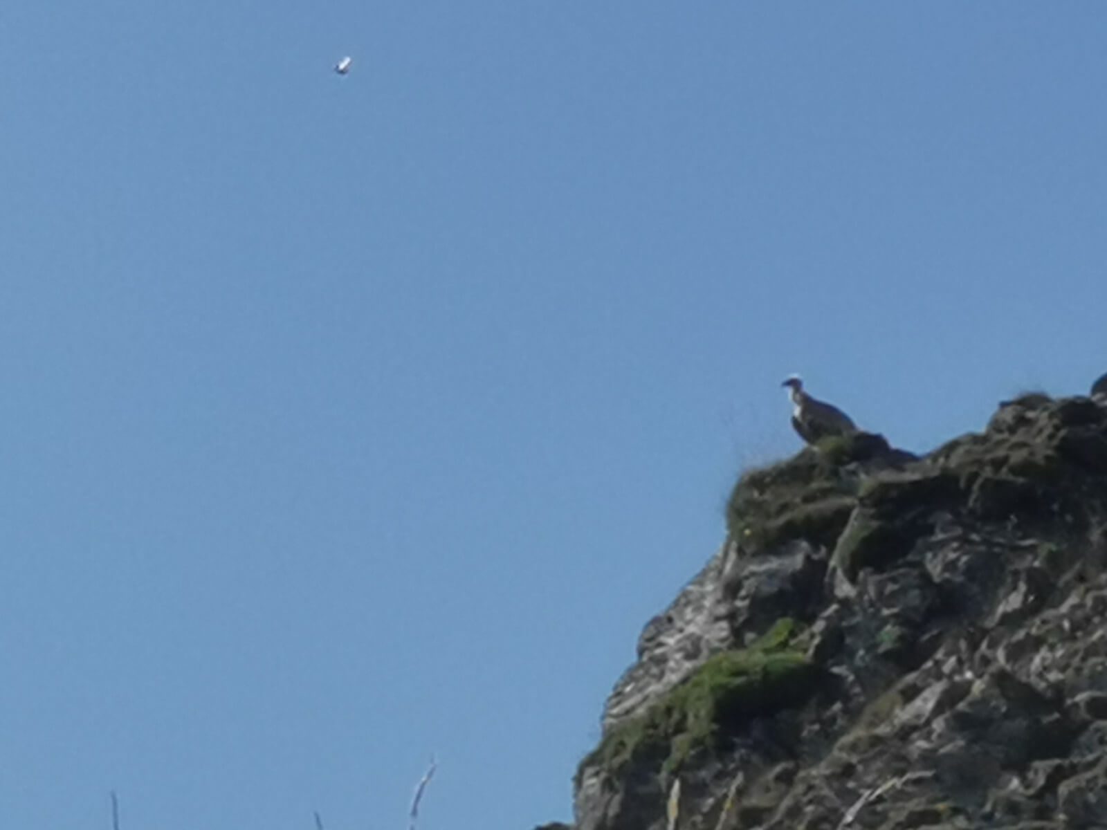 Nous poursuivons notre ascension vers un col à 1 800 mètres, avec une vue imprenable sur la face nord du Pic du Midi. Un parcours de haute montagne, entre sentiers escarpés et vastes étendues. Après le col, le chemin suit une longue ligne de crête, où brumes légères et courants d’air croisent le vol des grands vautours.